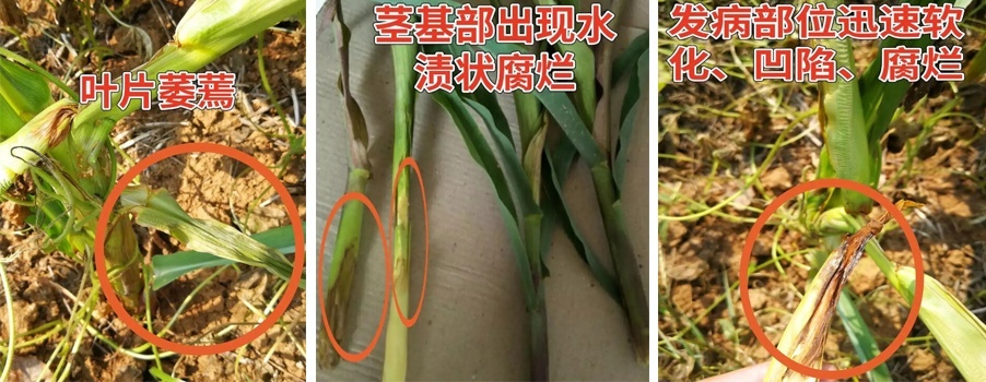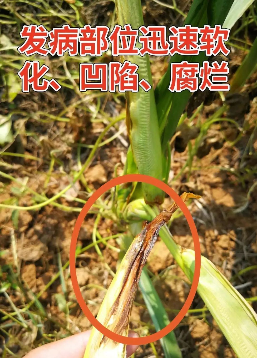 玉米细菌性茎基腐病一般从玉米的小喇叭口期启动(夏玉米5-6片叶时),也即是目下这个阶段。一般,细菌性茎基腐病发生,主要和底下4方面关联,而本年很容易发生。
