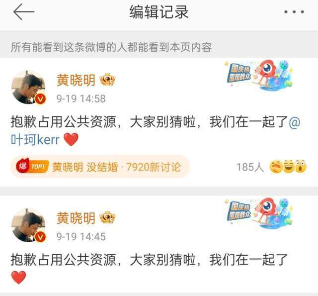 关联词叶珂痛心疾首,平直在9分钟后就发了这一条,然后黄晓明才在20分钟后发了官宣微博。在黄晓明官宣之后,叶珂才删除了这条微博。