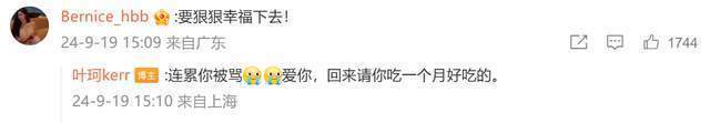 而在官宣之后,替叶珂话语的闺蜜,还现身接头区,称“要狠狠幸福下去”,得到了叶珂本东说念主的复兴“牵缠你被骂”。可见闺蜜的发言,很大可能是确切。那闺蜜说什么了?说叶珂已婚。