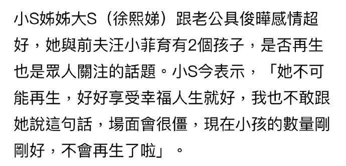 在节目里,具俊晔母亲提到很念念抱孙子。可要知谈,大S在领证第二天,就晓谕封肚,不会冒险生三胎,这也笃定会成为婚配中的一个问题。