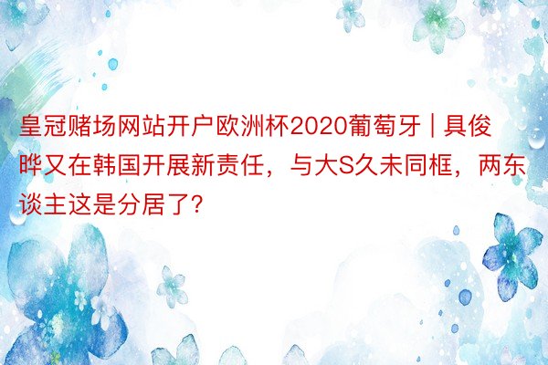 欧洲杯2020葡萄牙皇冠博彩 注册皇冠投注app具俊晔和大S的近况,很难不让东谈主联念念汪小菲和大S后期的婚配气象,亦然分居两地。不外其时是汪小菲两端跑,刻下酿成了大s。