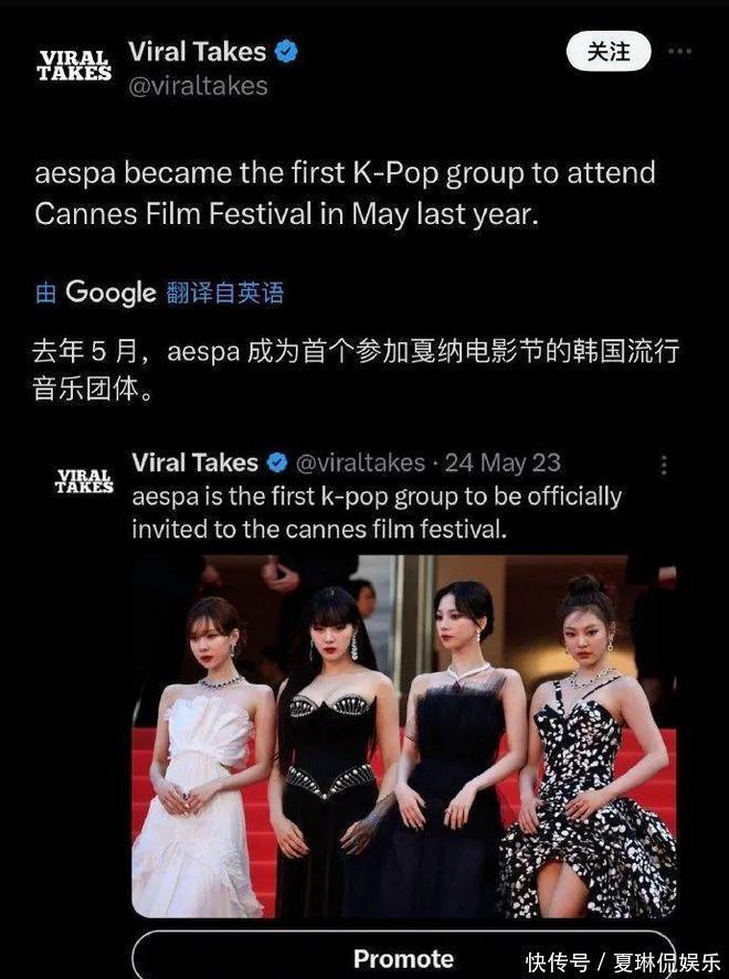 前锋资源额外可以,大牌合约没断过,前年aespa以萧邦全球大使的身份干涉戛纳电影节,这是其他女团踮脚也难以够着的资源。